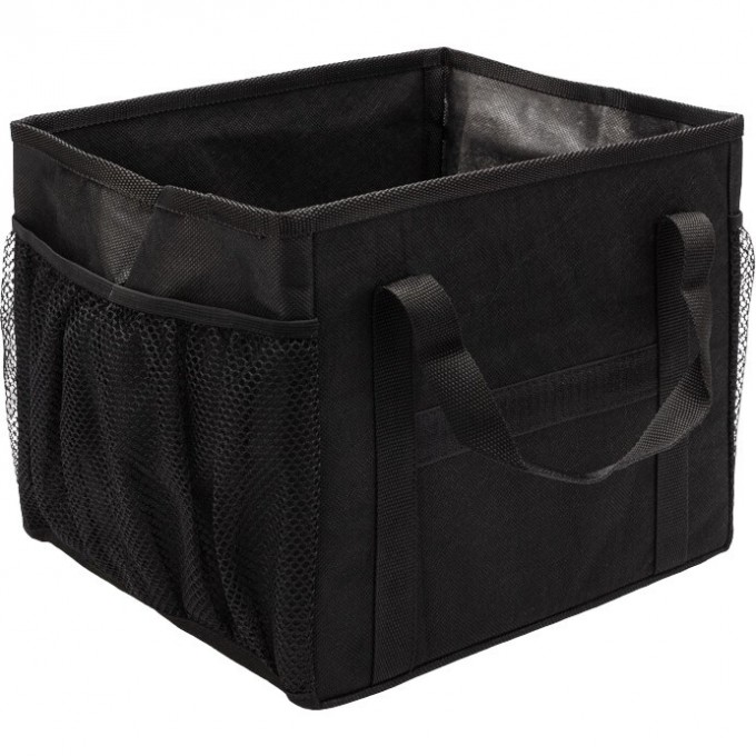 Универсальный органайзер в багажник автомобиля размером 30х30х26 см и объемом 23 л. Предназначен для обеспечения порядка в багажнике автомобиля. Для предотвращения скольжения по багажнику на дне органайзера предусмотрены липучки. На внешней части изделия также расположено 4 кармана для хранения необходимых мелочей.